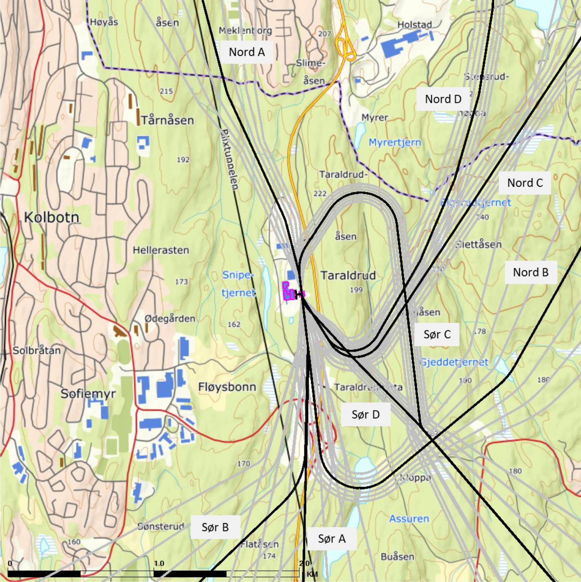 Kartet viser inn- og utflygingstraséer for helikopter ved politiets nasjonale beredskapssenter.