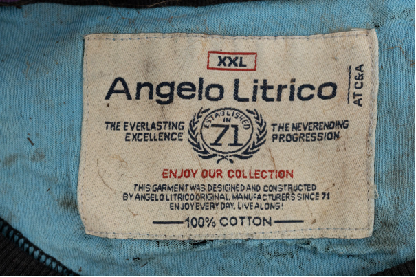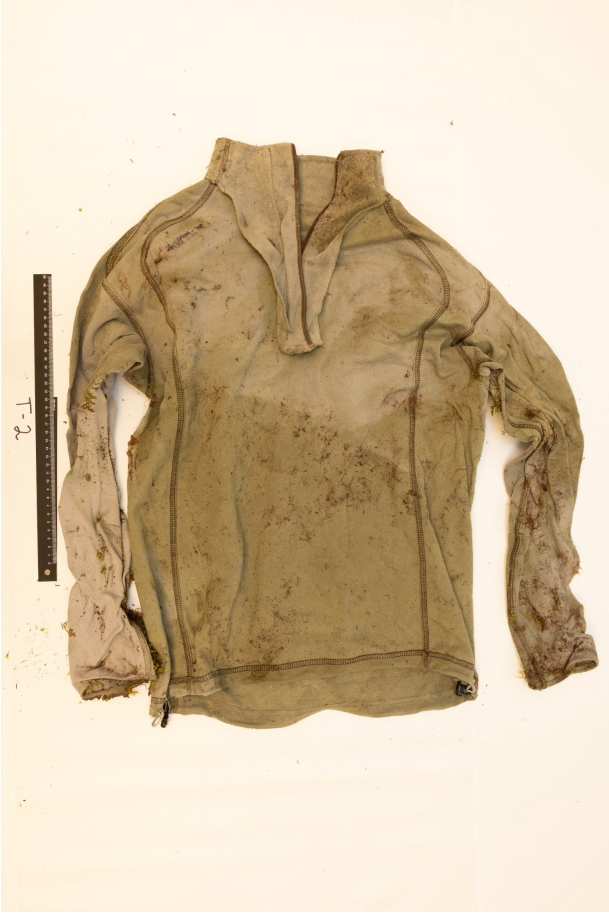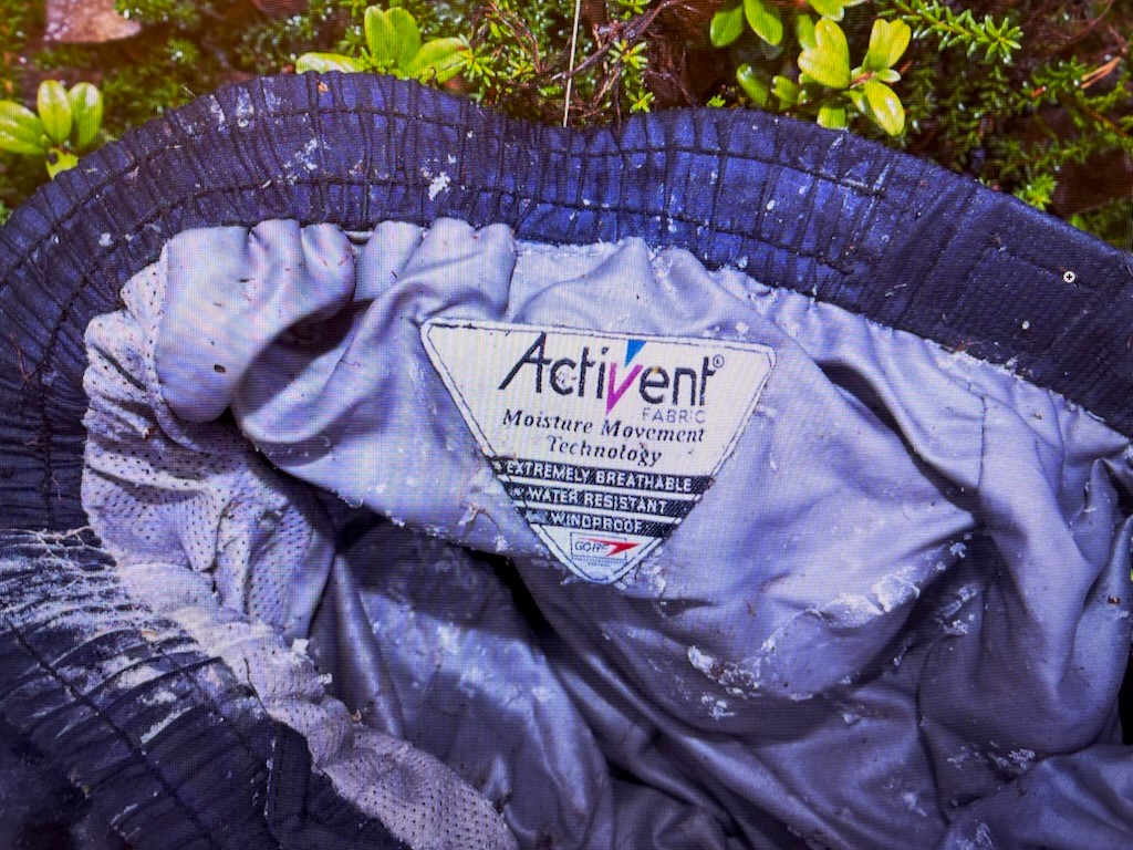 Gore-tex-bukse med merkelappen Active-ventFoto: Politiet Genser av merket StormbergFoto: PolitietT-skjorte av merket AngeloFoto: PolitietNærbilde av merket Angelo som er på t-skjortenFoto: Politiet