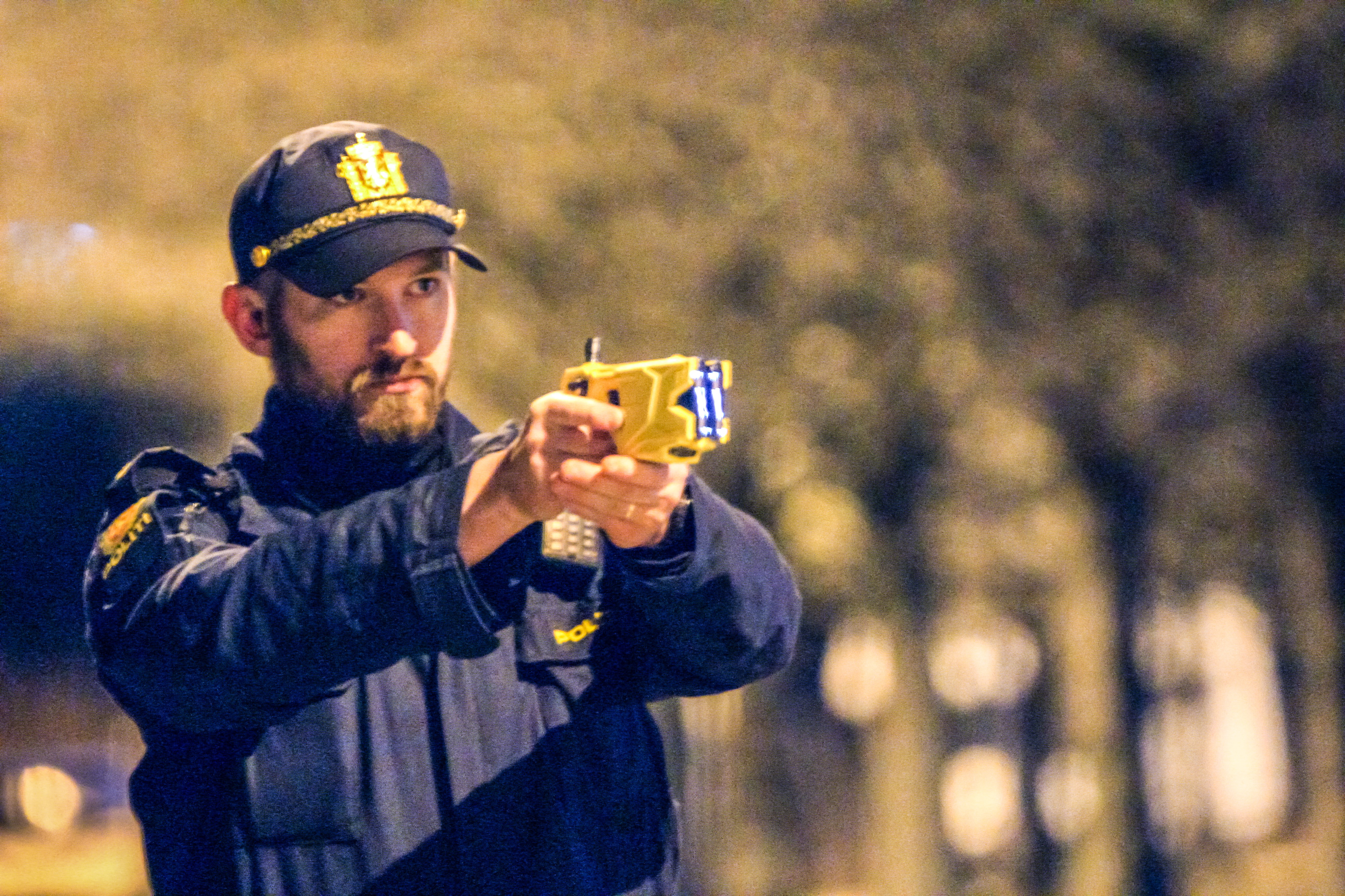 En politimann demonstrerer et elektrosjokkvåpen på kveldstid.Foto: PolitietUvalgte politidistrikt i Norge har siden 2019 prøvd ut maktmiddelet ESV i daglig tjeneste. Utprøvingen har blitt ledet av en prosjektgruppe sammensatt av representanter fra Politidirektoratet (POD), Politihøgskolen og Politiets Fellestjenester, og er eksternt evaluert av Umeå Universitet. POD mottok i mai den eksterne evalueringen av prosjektet. Evalueringen konkluderer bl.a. med at utprøvingen av ESV ikke har medført økt maktbruk fra politiets side, men at tilgang på ESV kan medføre noe endret maktbruk, herunder redusert bruk av pepperspray. Evalueringen viser også at ESV kan erstatte bruk av skytevåpen i noen tilfeller, men ikke i alle. Likevel er det indikasjoner på at tilgang på ESV kan medføre redusert risiko for alvorlige skader og bruk av dødelig makt fra politiet. Utprøvingen har ifølge en eksterne evalueringen fra Umeå-universitetet (link nederst på siden) ikke redusert tilliten til politiet fra publikum, som oppfatter politiet som kompetent til å vurdere behov for maktbruk, herunder i hvilke situasjoner ESV bør brukes og ikke.Direktoratets egen vurdering av utprøvingen konkluderer i stor grad sammenfallende med den eksterne evalueringen. Direktoratets vurdering trekker også fram at tilgang på ESV har fylt et opplevd udekket behov for et effektivt mindre dødelig maktmiddel mellom maktmidlene pepperspray/batong og skytevåpen. Sist konkluderer POD med at ESV har bedret egensikkerheten til innsatspersonellet og bidratt til bedre (og tryggere) oppdragsløsning både for politiet og politiets motpart.– Med bakgrunn i dette kunnskapsgrunnlaget konkluderte vi med at det var riktig å anbefale å innføre ESV i politiet og vi er tilfreds med at politiske myndigheter støtter oss i dette, sier beredskapsdirektør Tone Vangen.Saken fortsetter under bildet. Et elektrosjokkvåpen vises frem. Foto: PolitietMål om minimal maktbrukVangen peker på at denne typen maktmidler vil være viktig for politiet, fordi målet alltid er å utøve så lite makt som mulig i de situasjonene politiet ser seg nødt til dette.– Vi tar maktbruk på alvor, og det vil alltid være et mål for oss å redusere maktbruken til et absolutt minimum. Likevel er maktbruk en del av vår hverdag og våre oppgaver, og da er det vår plikt å sørge for at maktbruken skjer så skånsomt som mulig med minst mulig skaderisiko, sier beredskapsdirektør i Politidirektoratet, Tone Vangen.– Å anbefale å innføre et nytt maktmiddel er ikke noe vi tar lett på, men i dette prosjektet har vi tatt oss tid til å undersøke konsekvensen av bruken over flere år, samt latt andre evaluere oss, og jeg er derfor trygg på det kunnskapsgrunnlaget vi gir denne anbefalingen på, tilføyer hun.Vangen peker også på at maktbruk og tillitt til politiet henger tett sammen, og at det å innføre nye maktmidler derfor blir en politisk beslutning til syvende og sist.– Jeg er glad for evalueringen viser at publikum har tillit til oss og oppfatter politiet som kompetent med hensyn til maktbruk. Samtidig er jeg svært bevisst på at grunnlaget for tilliten er avhengig av hvordan vi forvalter mandatet vi har, herunder i hvilke situasjoner vi bruker makt og ikke minst i hvilke situasjoner vi ikke bruker makt.Politidirektoratet vil nå lage en plan for utrullingen av elektrosjokkvåpen i etaten. Last ned rapporten fra Universitetet i Umeå, om elektrosjokkvåpen, her (4,06 MB pdf).